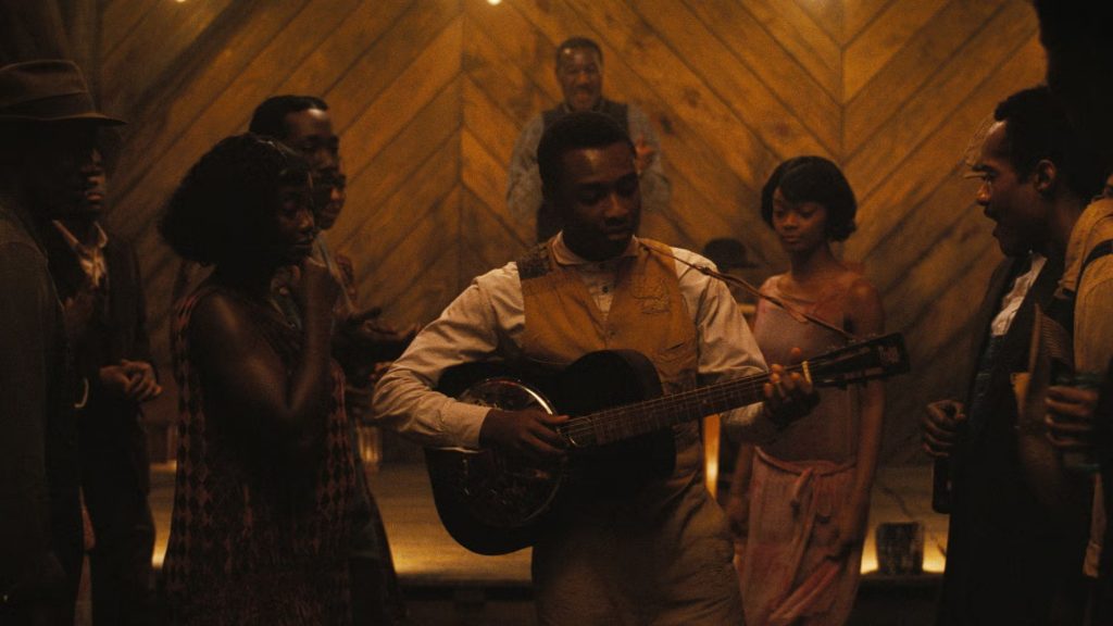 The standout sequence arrives around the midpoint, and it’s nothing short of extraordinary. As Samuel begins to play in the juke joint, the energy in the room shifts, and what starts as a performance becomes something far bigger. The camera moves through the space in a fluid, almost hypnotic motion, as figures from different eras begin to appear, musicians from the past, the present, and even the future, all drawn together by the power of the music. It’s a bold, inventive moment that breaks away from realism entirely, showing how music can connect people across time and experience, and it lands with a kind of emotional clarity that stays with you long after. In a film filled with violence and chaos, this sequence stands out as something almost transcendent, a reminder of why these stories, and these sounds, matter.